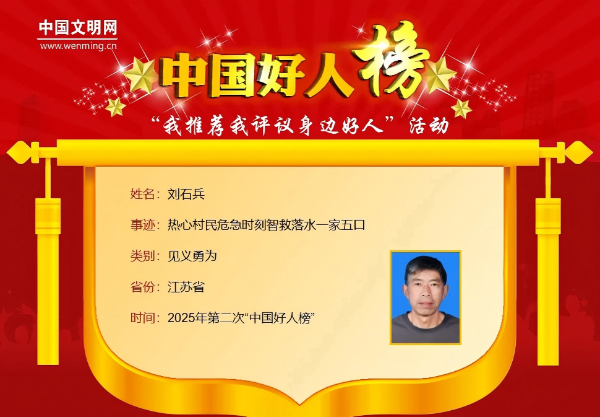 2025年2月11日清晨,江苏省泰州市医药高新区(高港区)胡庄镇刘荡村的气温降至零下8℃,寒风刺骨。56岁的村民刘石兵,凭借一条旧水泥船,用冻得青紫的手,在冰冷刺骨的河水中成功救起了五条鲜活的生命。这位淳朴的村民觉得只是“做了该做的事”,但当听说自己的义举为村里争得了荣誉,他的脸上还是露出了欣慰的笑容。