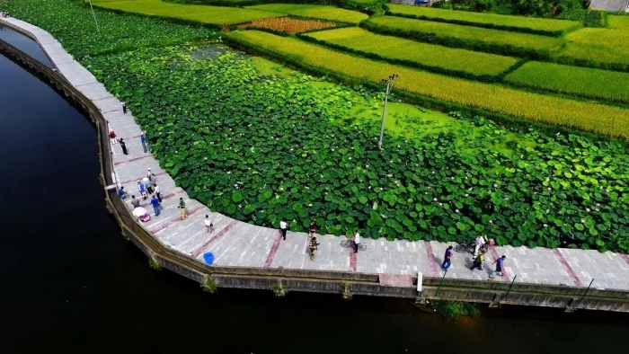 “千亩荷塘”——环湖碧荷园旅游景区鸟瞰图。四川文明网供图