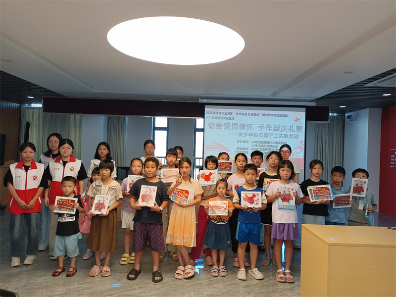 “钻绘爱国情怀 手作国庆礼赞”青少年钻石画手工实践活动。珠海市文明办供图