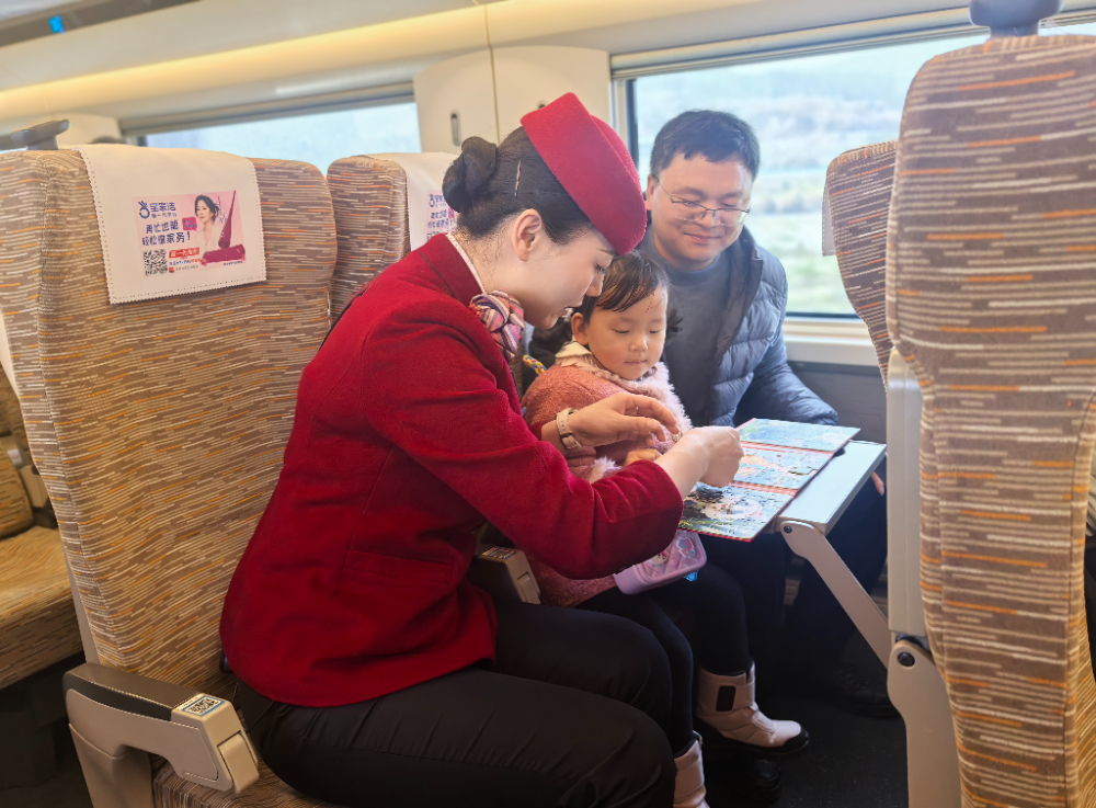 在南昌客运段G336次列车上,工作人员正在陪儿童读绘本。中国文明网网友@付强 摄